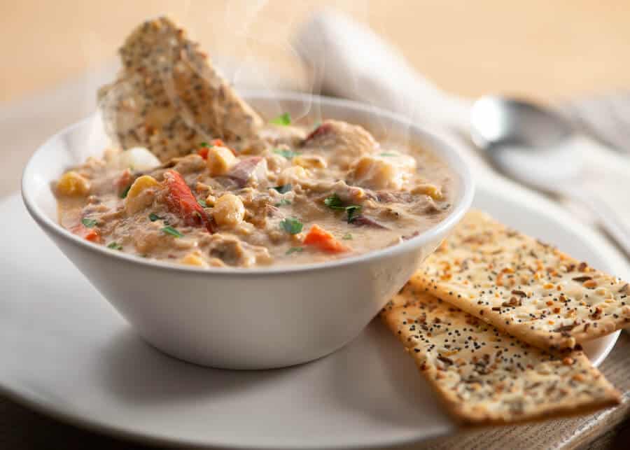 Some prefer to prepare this chowder with milk or cream, stirring the dairy into the pot as it warms. If you want a slightly silkier consistency, we recommend trying this technique to thin the soup. Around ¼ cup of milk should do the trick, but let your preference be the guide.