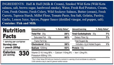 Absolutely delicious and simple to prepare. Your smoked wild Salmon chowder is very filling and easy to prepare. It’s perfect for lunch or even for dinner when you’re short on time. I will keep a supply in my pantry from now on.