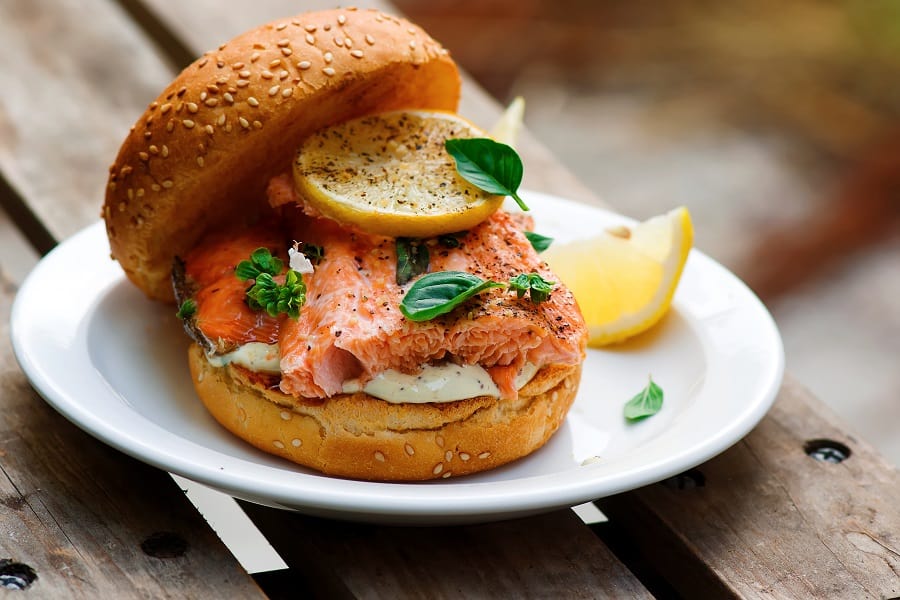 - Salmon Burgers – Flake cooked pink salmon into a patty with herbs, panko, and Dijon